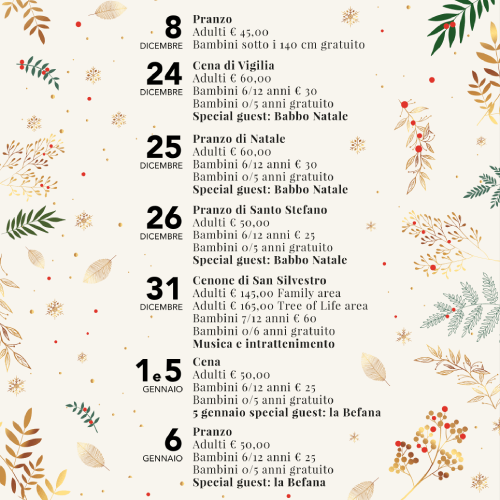 Bambini sotto i 140 cm gratis - massimo uno per ogni adulto pagante. Area giochi sempre disponibile e animazione dal venerdì alla domenica